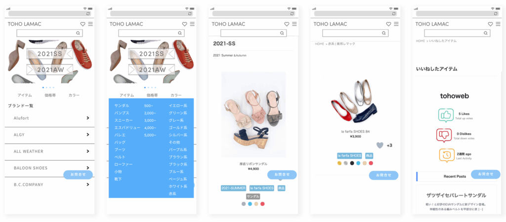 お取引先企業が靴の種類や色、素材によってチョイスしたり、気に入ったアイテムをキープできるよう、WordPressで使用できるショッピングプラグイン機能ほか、多くのプラグインを搭載しました。